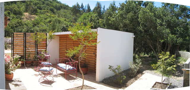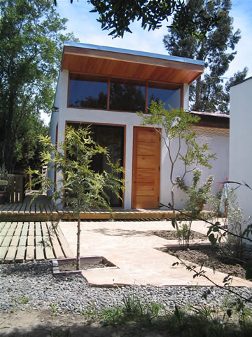 La terraza permite envolverse con el follaje de la vegetación nativa de ese sector, tal como los senderos permiten adentrarse en el pequeño bosque que es el resto del terreno.