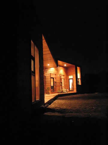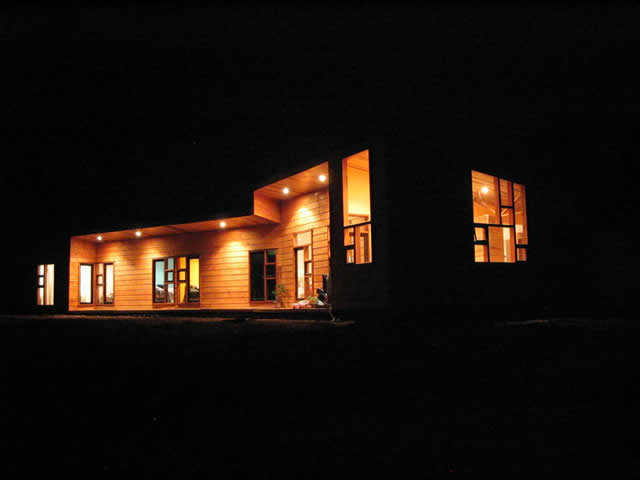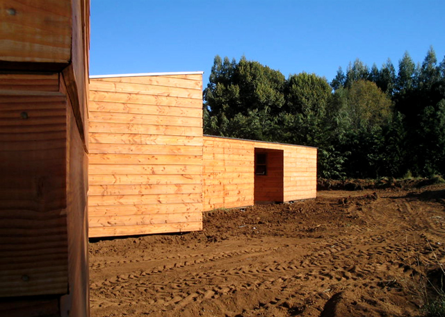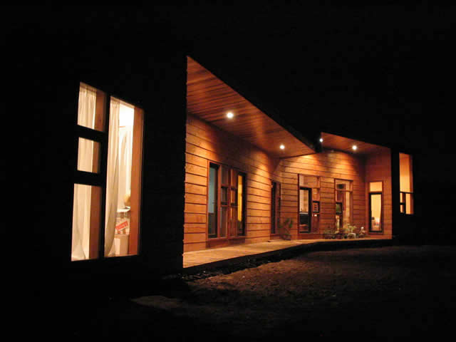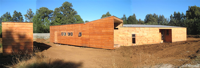 estructura: fundación de hormigón armado, envigado y estructura de roble hualle y canelo. revestimiento: tinglado de pino oregón nacional, cielos de laurel, pisos de laurel y olivillo, ventanas de olivillo.