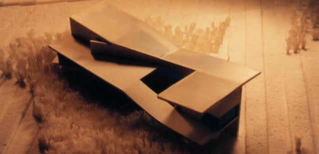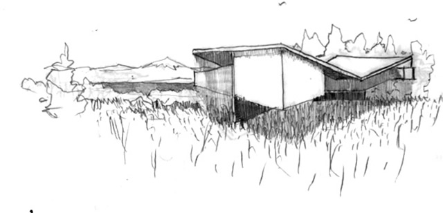 Con esta vista como telón de fondo, el proyecto se perfila a través de un techo plegado y un muro quebrado.