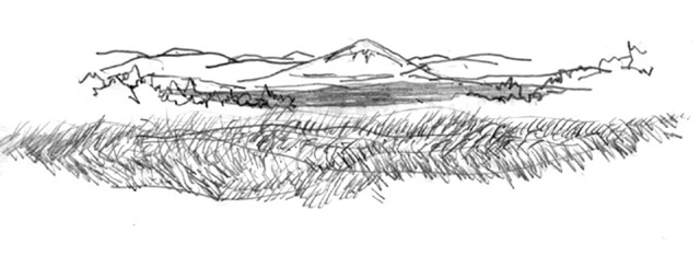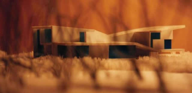 La imagen de la casa surge de la posición del terreno respecto del volcán y el lago Villarrica.