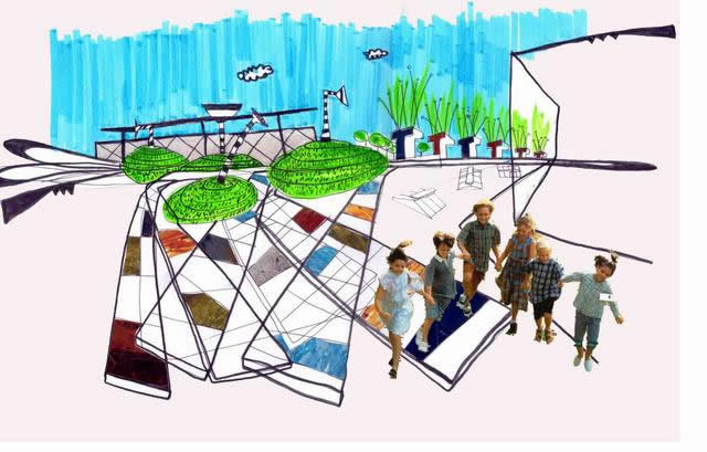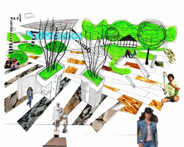La propuesta pretende hacerse cargo de dichos espacios residuales del centro de la ciudad y manifestar la presencia de la avenida Vicuña Mackenna en su conexión con la avenida Américo Vespucio a través de una pasarela-mirador, que salva la zanja creada por el paso del metro.